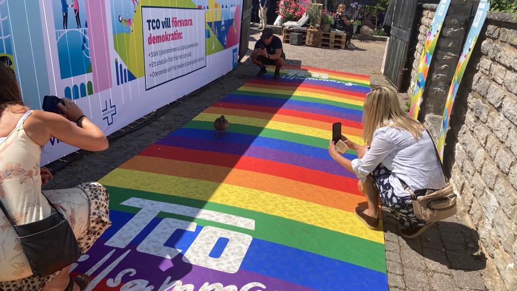 En stolt and väckte intresse när den anslöt sig till kampen för allas rätt att vara och älska den man vill, på TCO:s regnbågsmatta.