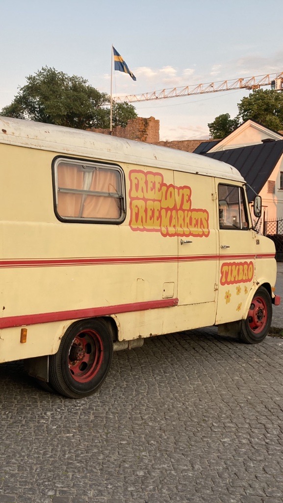 Free love, free markets, stod det på Timbros buss som stod parkerad vid Söderport och varifrån tankesmedjan livesände intervjuer under rubriken ”I sängen med Timbro”.